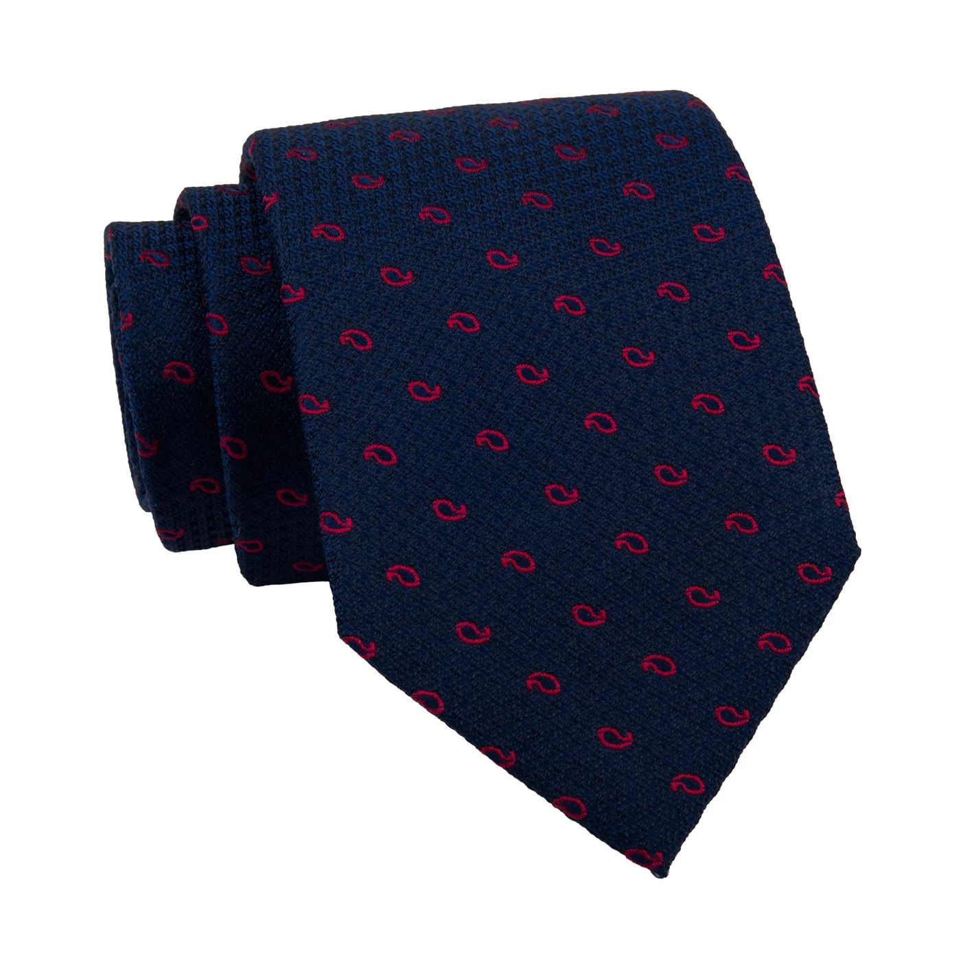 Alexandria Paisley is part of The Dark Knot’s premium line of ultra high yarn count luxury silk ties, The Edition Collection. This exquisite silk tie features a repeating small fuschia paisley pattern set against a navy background.
