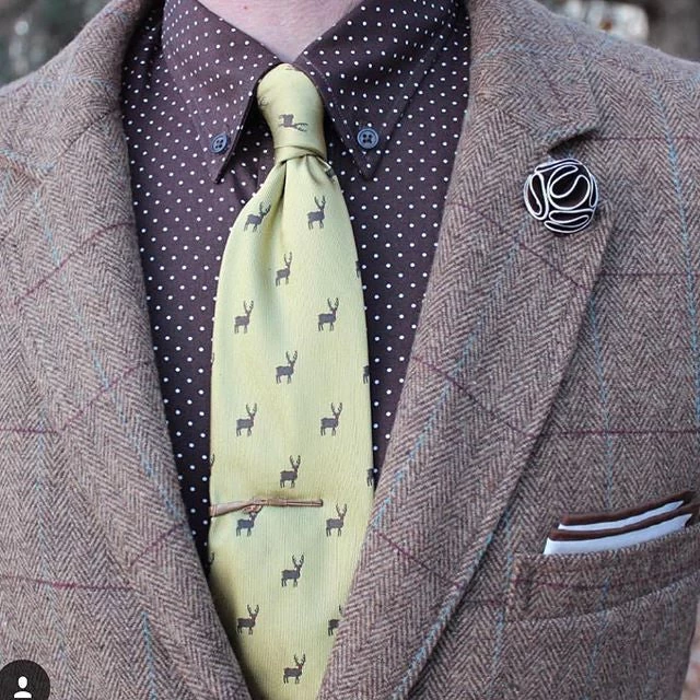 Recommended with a blue, yellow, or pink silk tie and a burgundy or navy pocket square (in either silk or linen)