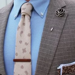 Amherst Brown / White is an intricately handcrafted brown lapel flower complemented with white trimmings. Â