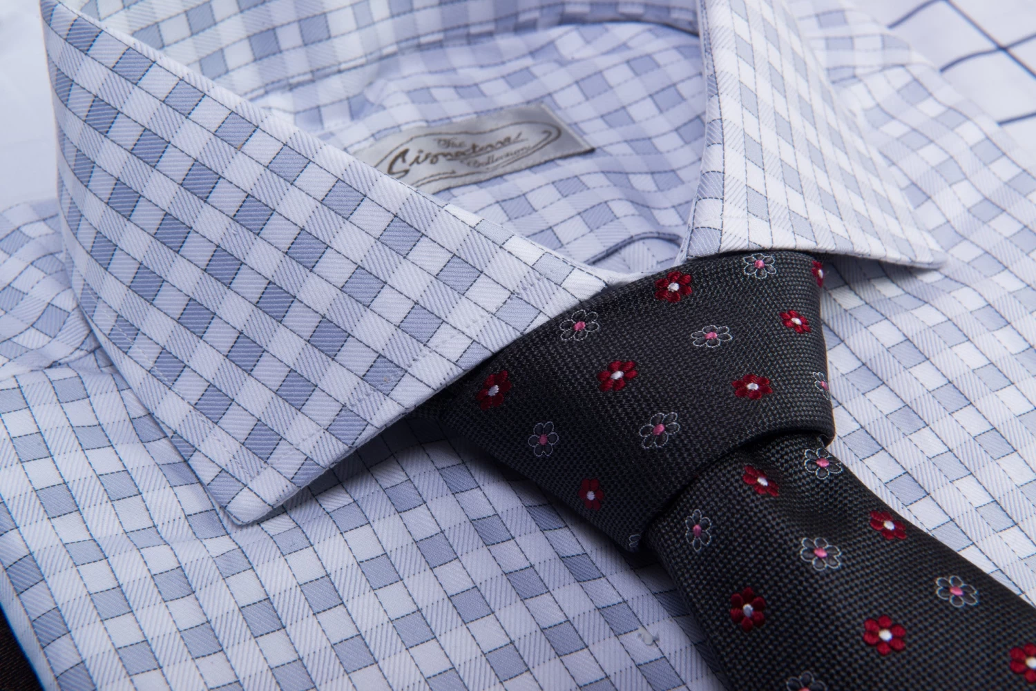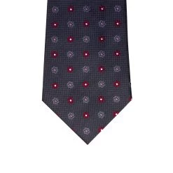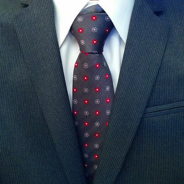Berkshire Abstract is a contemporary woven silk tie featuring a red floral pattern against a grey houndstooth background.