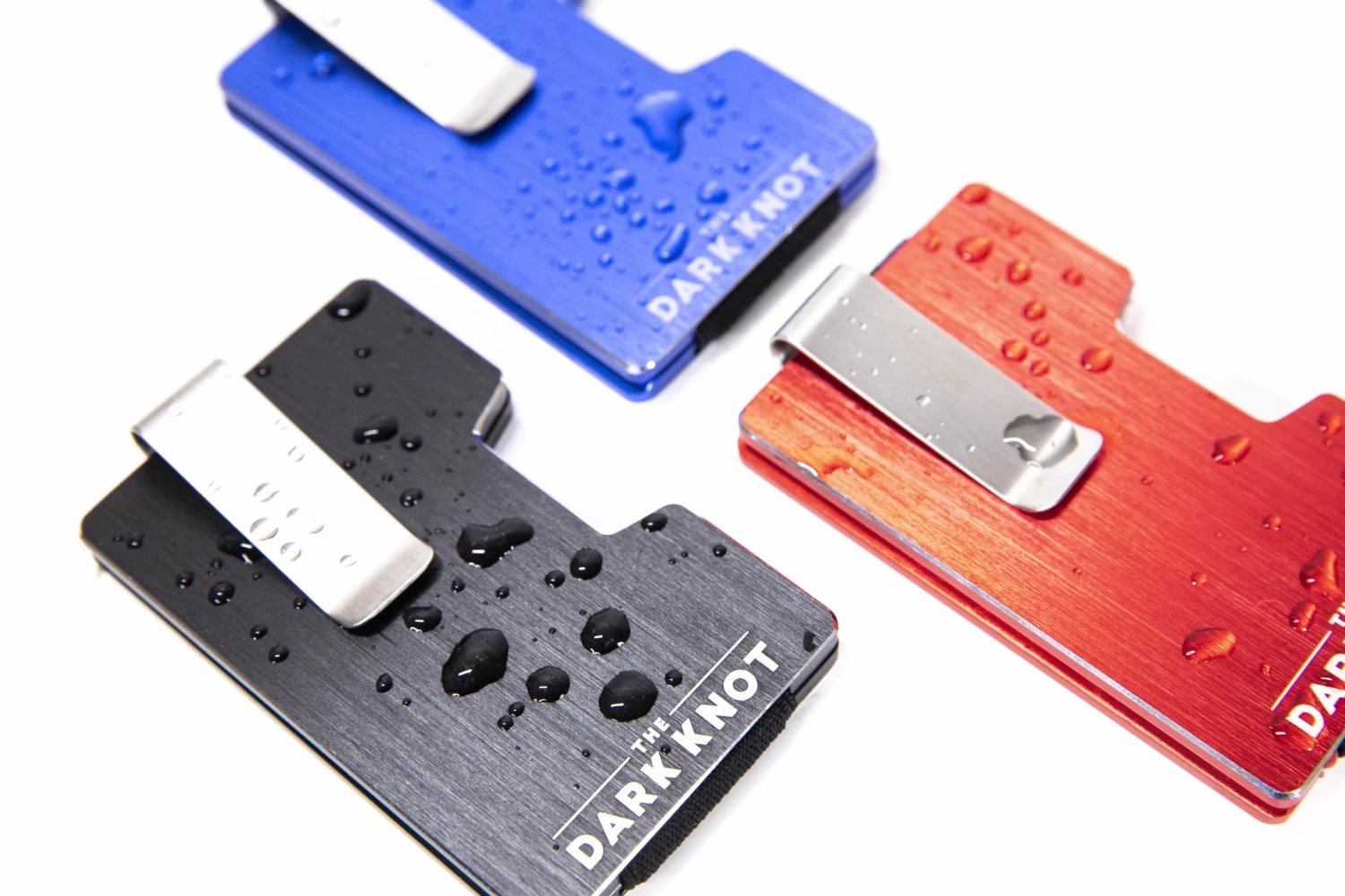 Made from aviation grade aluminum, this wallet also comes with a detachable money clip. The Pro Performance Wallet, with strong elastic band technology, can hold up to 15-20 cards.Â