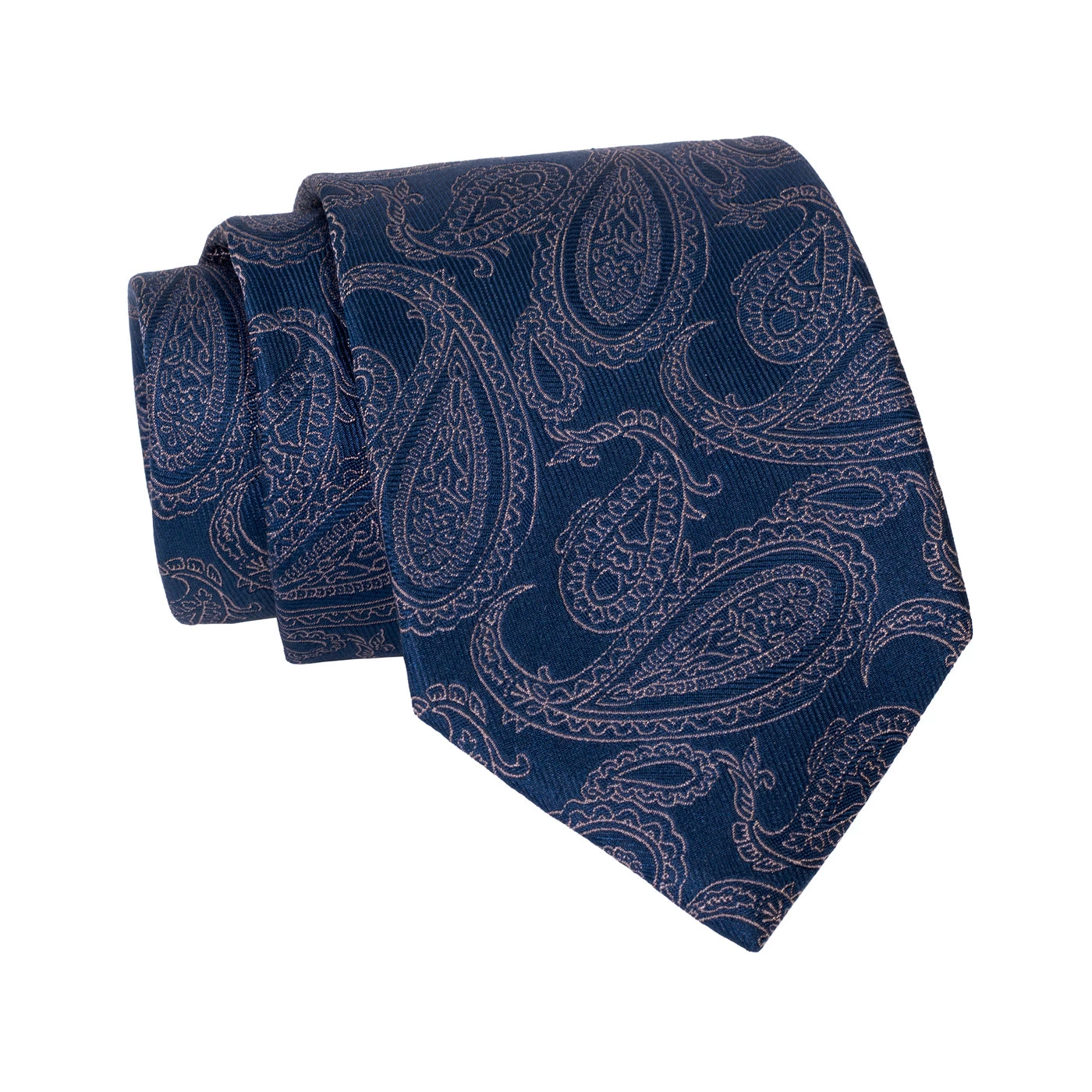 Caledonia Paisley is part of The Dark Knot’s premium line of ultra high yarn count luxury silk ties, The Haute Collection. This exquisite silk tie features an intricate gold paisley pattern set against a rich blue twill background.Â