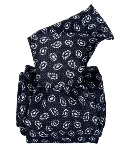 Cernobbio Paisley is a stunning contemporary, cashmere inspired paisley silk tie, featuring an intricate silver & white paisley pattern set against a navy background.