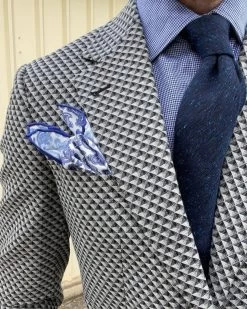 Alternatively, this pocket square can be worn with a jacket and a solid, striped or checkered white, grey, red or pink shirt.