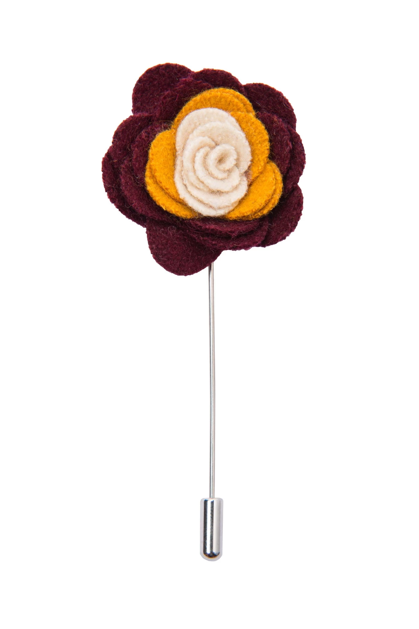 Concord Burgundy / Yellow / White is a contemporary handcrafted lapel flower that will add some serious flair to your attire!Â