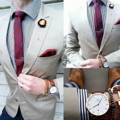 Recommended with a blue or pink silk tie and a red or navy linen or silk pocket square for maximum effect. Â