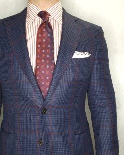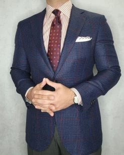 Derry Foulard is part of The Dark Knot’s premium line of ultra high yarn count luxury silk ties, The Haute Collection. This exquisite silk tie features a repeating burgundy and blue motif set against a burgundy houndstooth background.