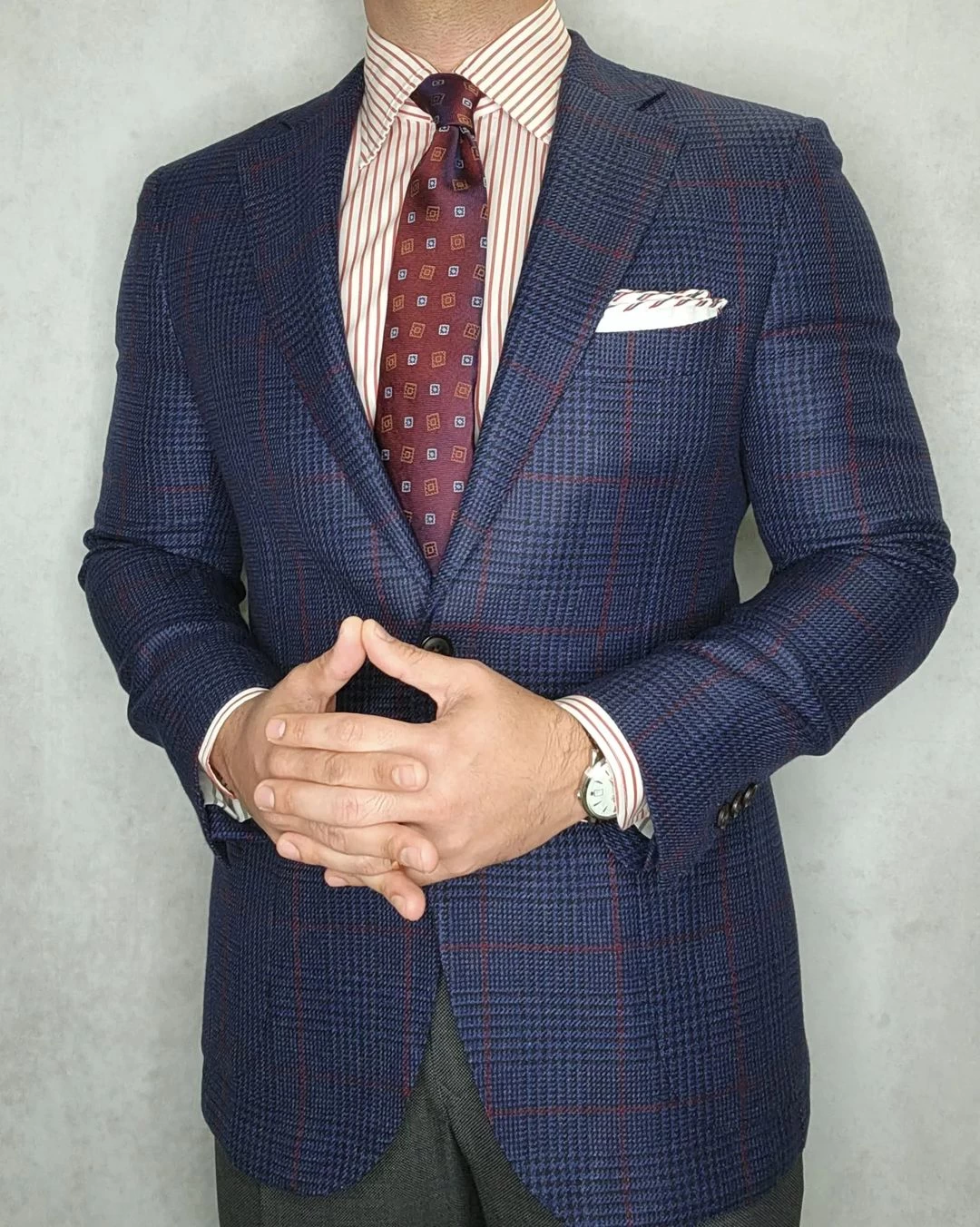 We recommend polishing your look off with one of our intricate pocket squares, which will add more interest to this classic piece.