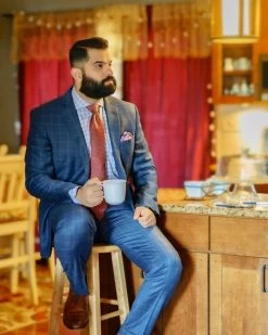 Pair this exquisite silk tie with a solid white, light blue or grey shirt, and a solid, striped or plaid charcoal grey or navy blue suit. A grey shirt will provide a neutral backdrop, a light blue shirt will provide a great level of contrast and a white shirt will have you looking elegant.