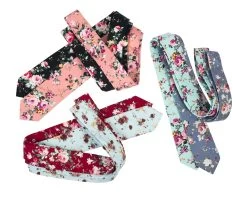 Dover Floral is an exquisite cotton tie featuring a green, white and pink floral pattern set against a black background.Â