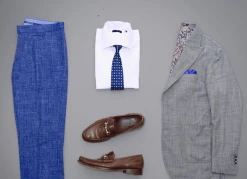 Pair this exquisite silk tie with a solid, striped, or micro-checkered white, light blue, or grey shirt and a solid, striped, or plaid charcoal grey or navy blue suit. The pattern of this design allows it to be worn with various shirt and suit patterns.