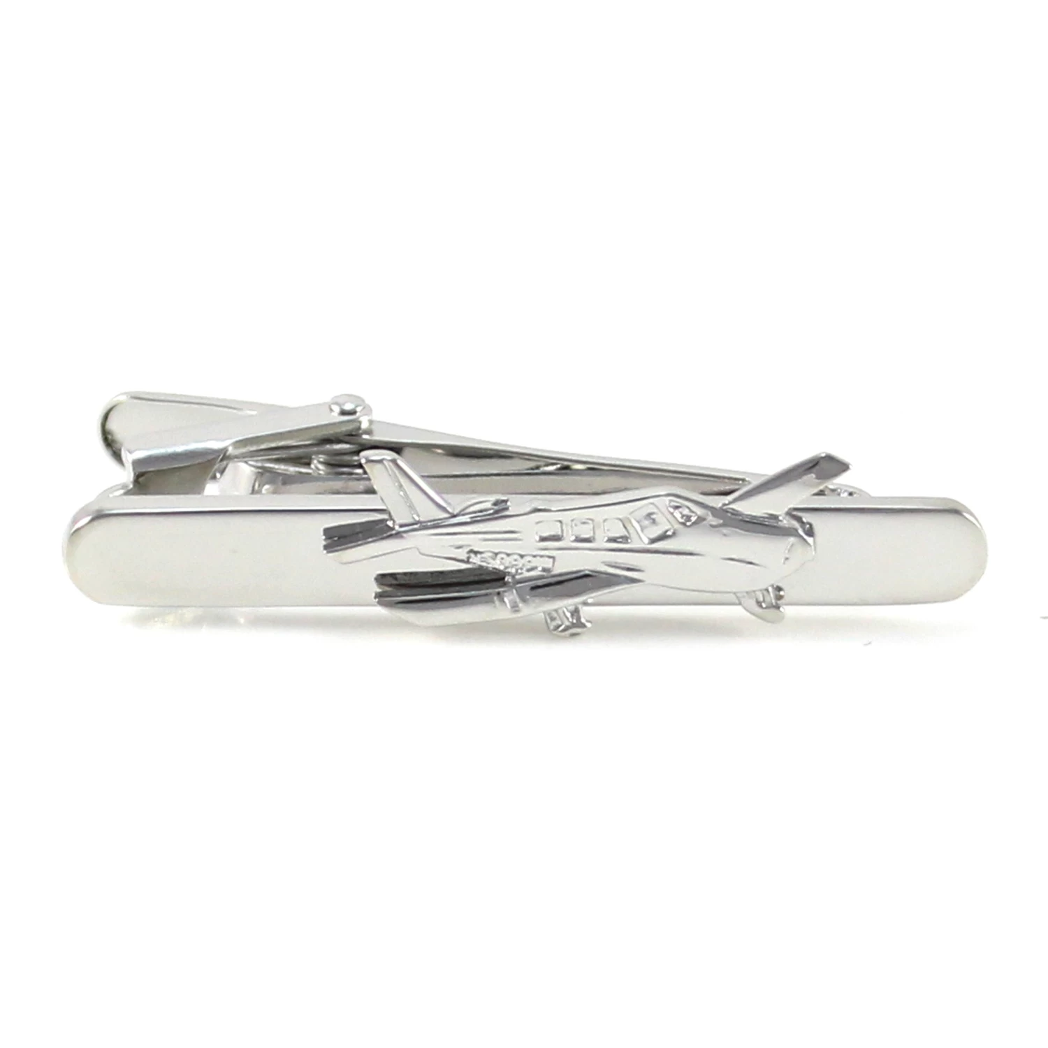 An exquisite silver airplane themed tie bar, with rhodium plating. This tie bar features pinch clasp finishing that will hold your tie securely in place.Â