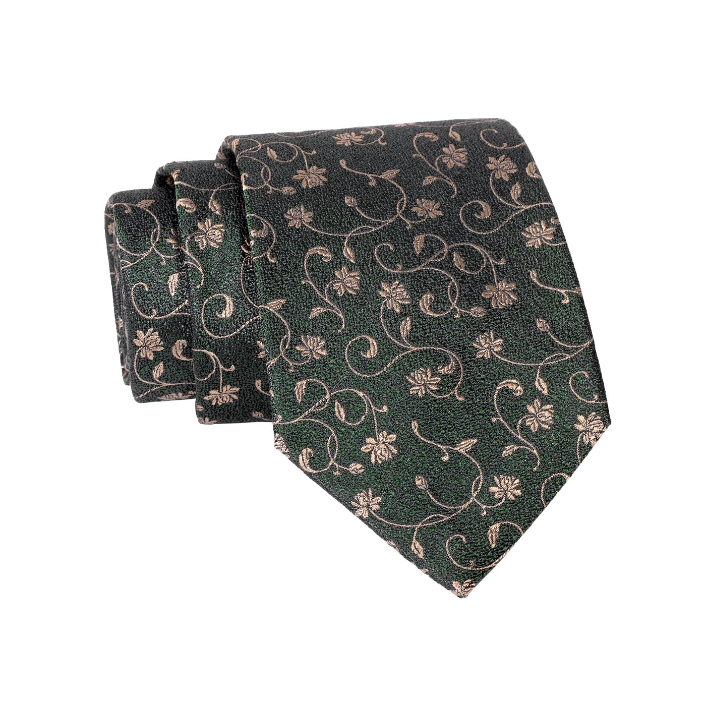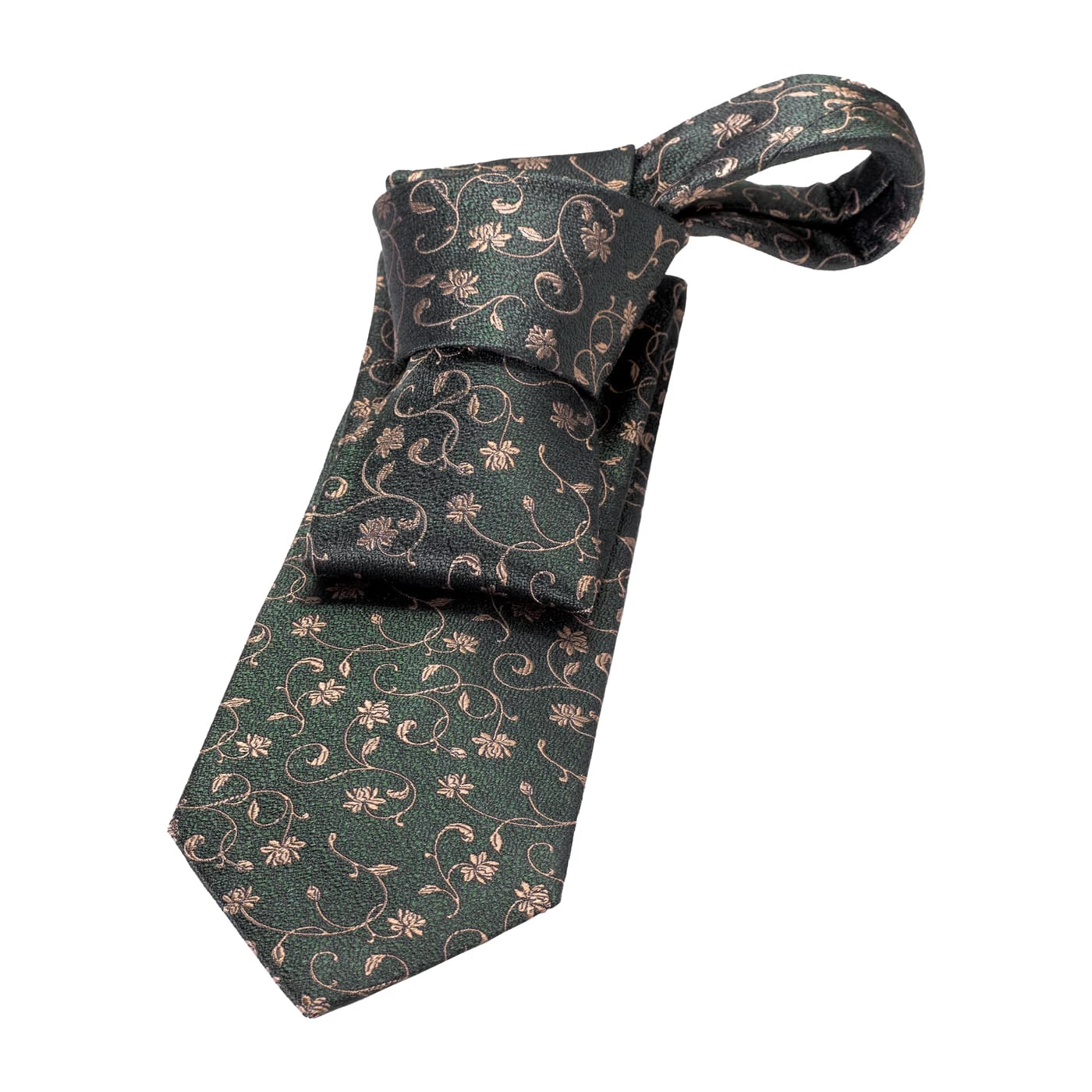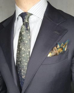 Kingsbury Floral is part of The Dark Knot’s premium line of ultra high yarn count luxury silk ties, The Haute Collection. This exquisite silk tie features a stunnng gold floral pattern set against a rich olive green background.