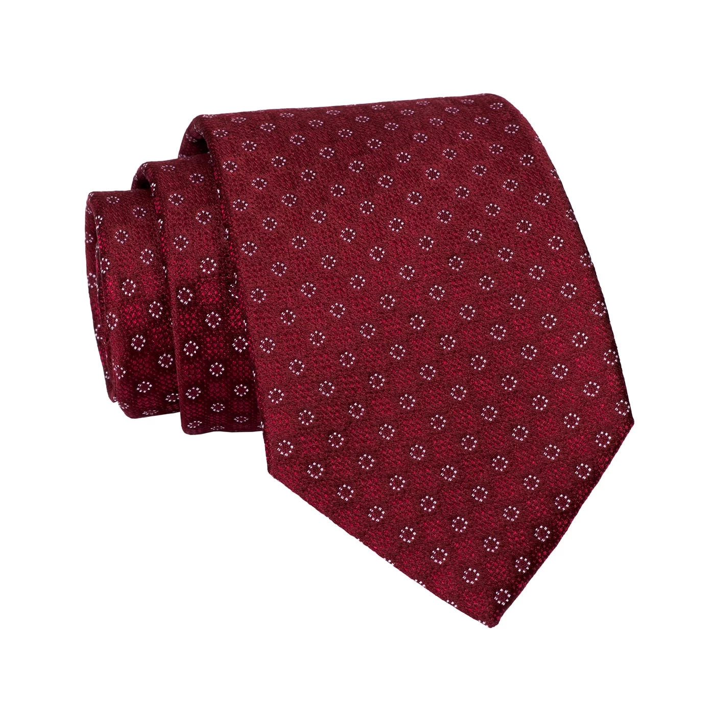 Lawrence Foulard is part of The Dark Knot’s premium line of ultra high yarn count luxury silk ties, The Haute Collection. This exquisite silk tie features a repeating silver circles pattern set against a deep, rich, red background.