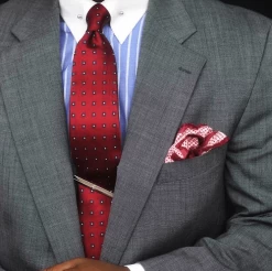 Our experts suggest pairing this stunning silk tie with a solid white, light blue or grey shirt and a solid, pinstripe or plaid charcoal grey or navy blue suit. A grey shirt will provide more of a neutral look, a light blue shirt will provide the perfect level of contrast, while a white shirt will have you looking elegant.Â
