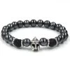 Cream & brown stone and black matte beaded bracelets featuring gold and silver copper crowns. Elastic rope finishing makes these stackable bracelets wearable across all wrist sizes.
