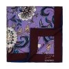 Stafford Squares is a contemporary foulard silk tie that features burgundy squares with light blue rectangles and silver dots spread across a black background. Â