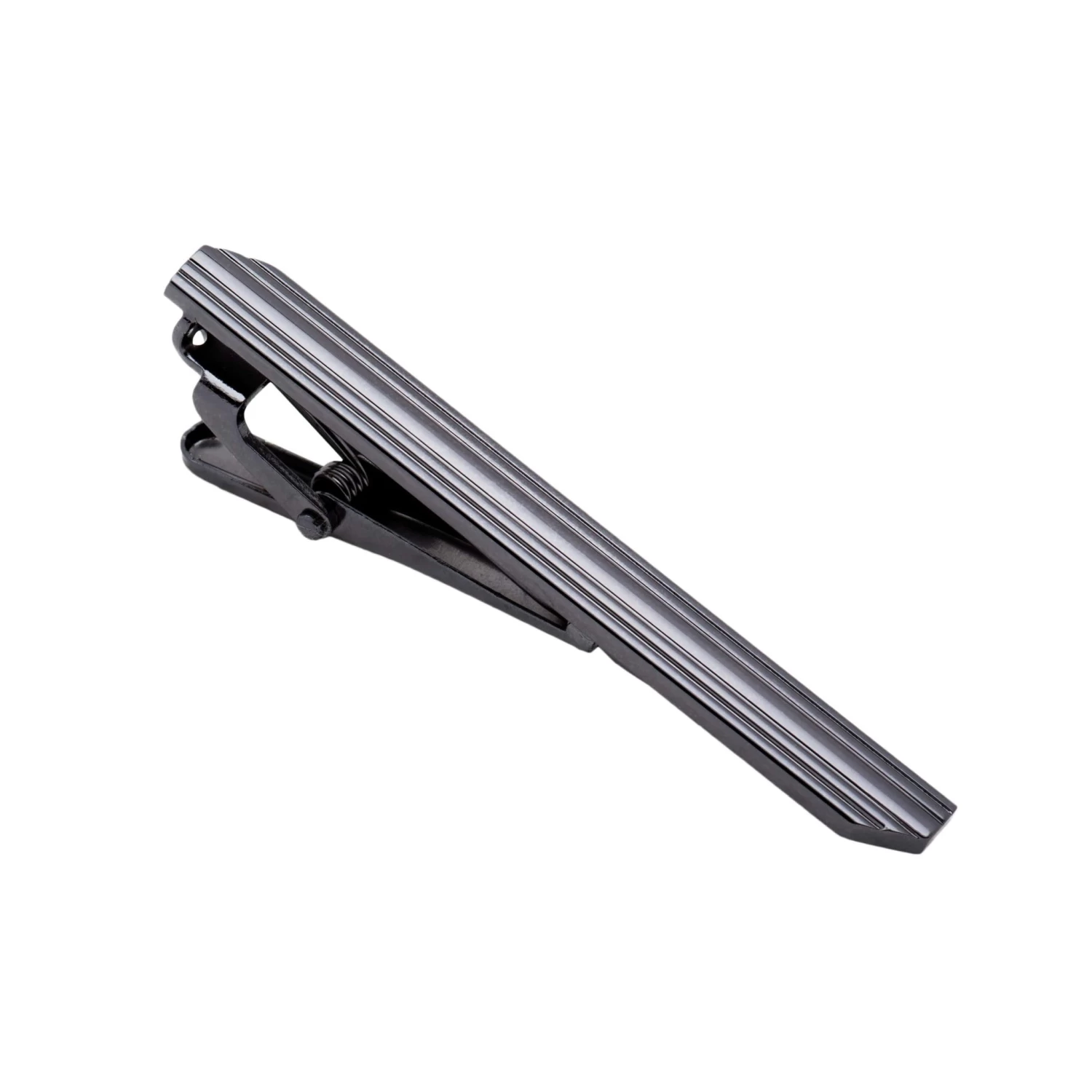 An exquisite,grey, stainless steel, ridged surface 2 1/4 inch (5.8 cm) tie bar with pinch clasp finishing that will hold your tie securely in place.