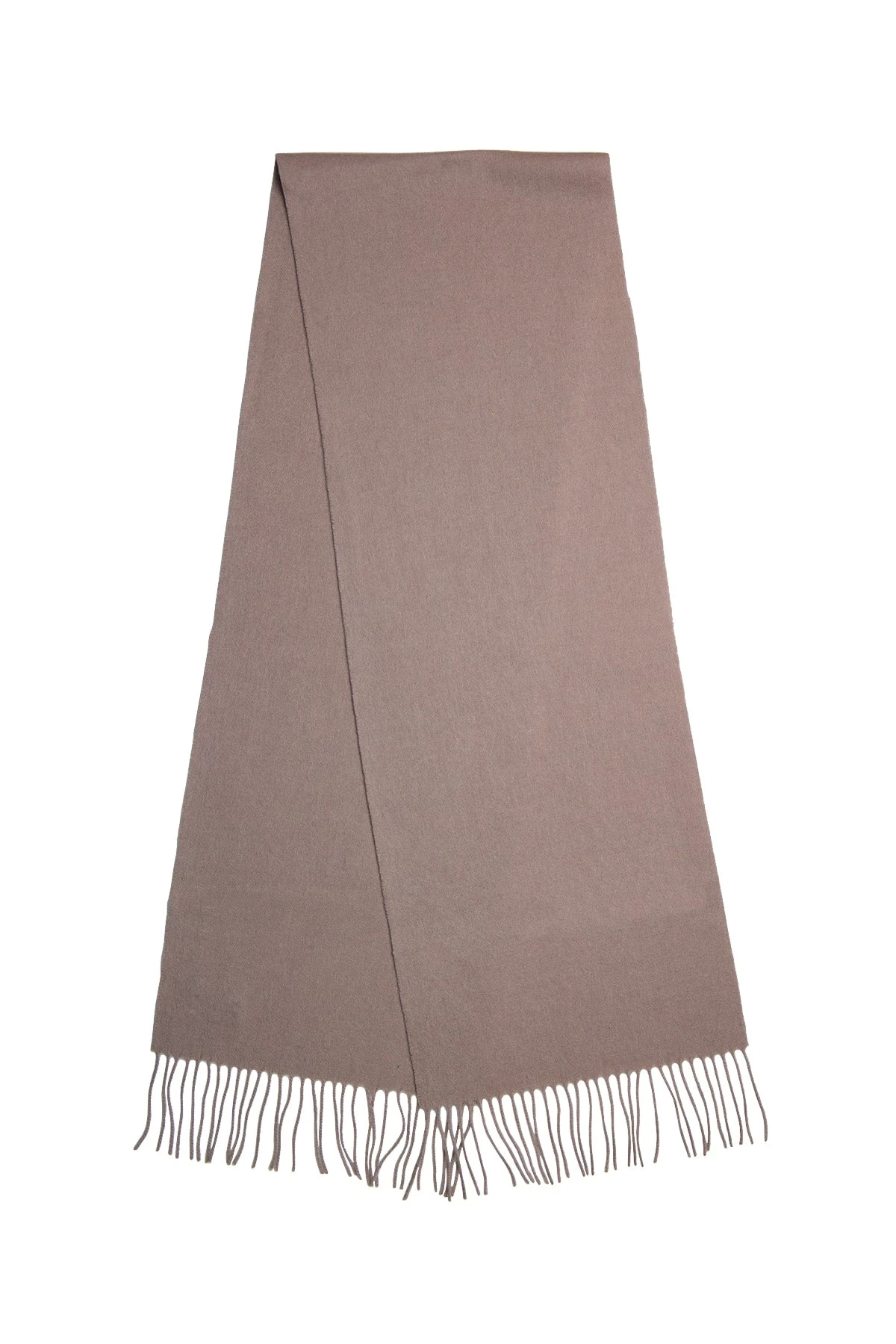 Tarrytown Taupe is a contemporary woolen solid taupe scarf, with taupe tassels.