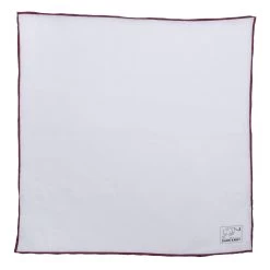 Tuxedo White is a contemporary hand made white linen pocket square with burgundy contrasting hand rolled edges. Wear this Pocket Square with a Presidential Fold for extra sophistication and panache!