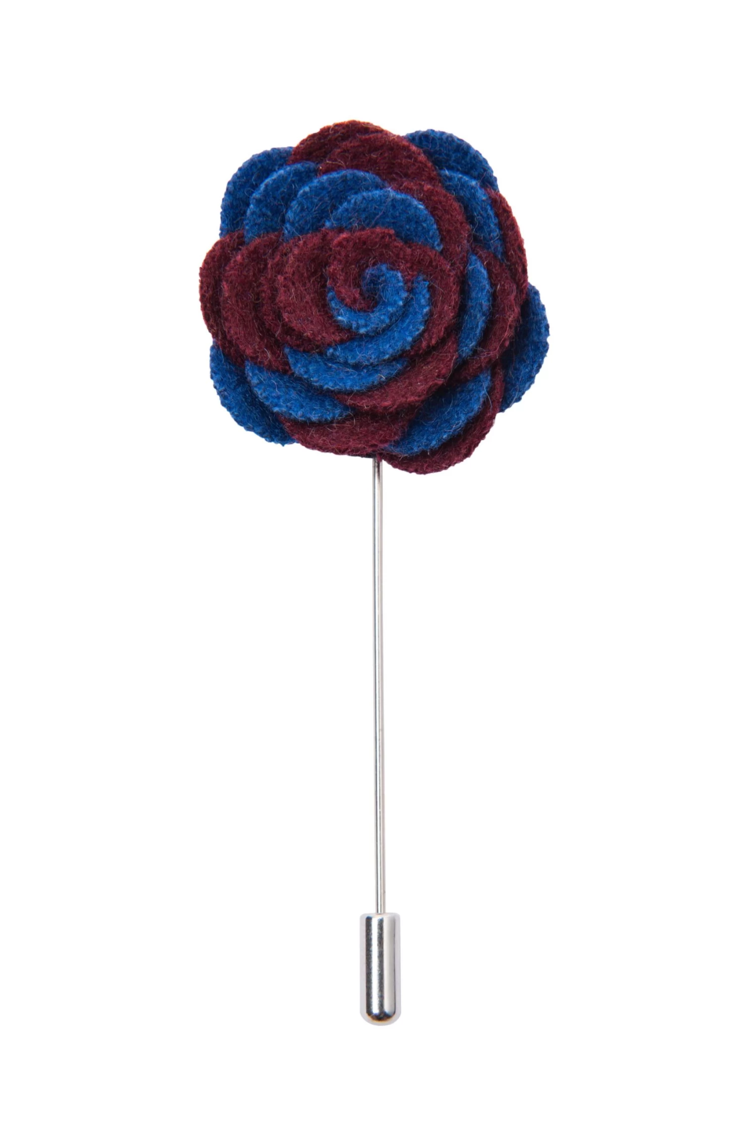 Washington Blue / Burgundy is a contemporary hand cut lapel flower that will add an element of flair to your ensemble.