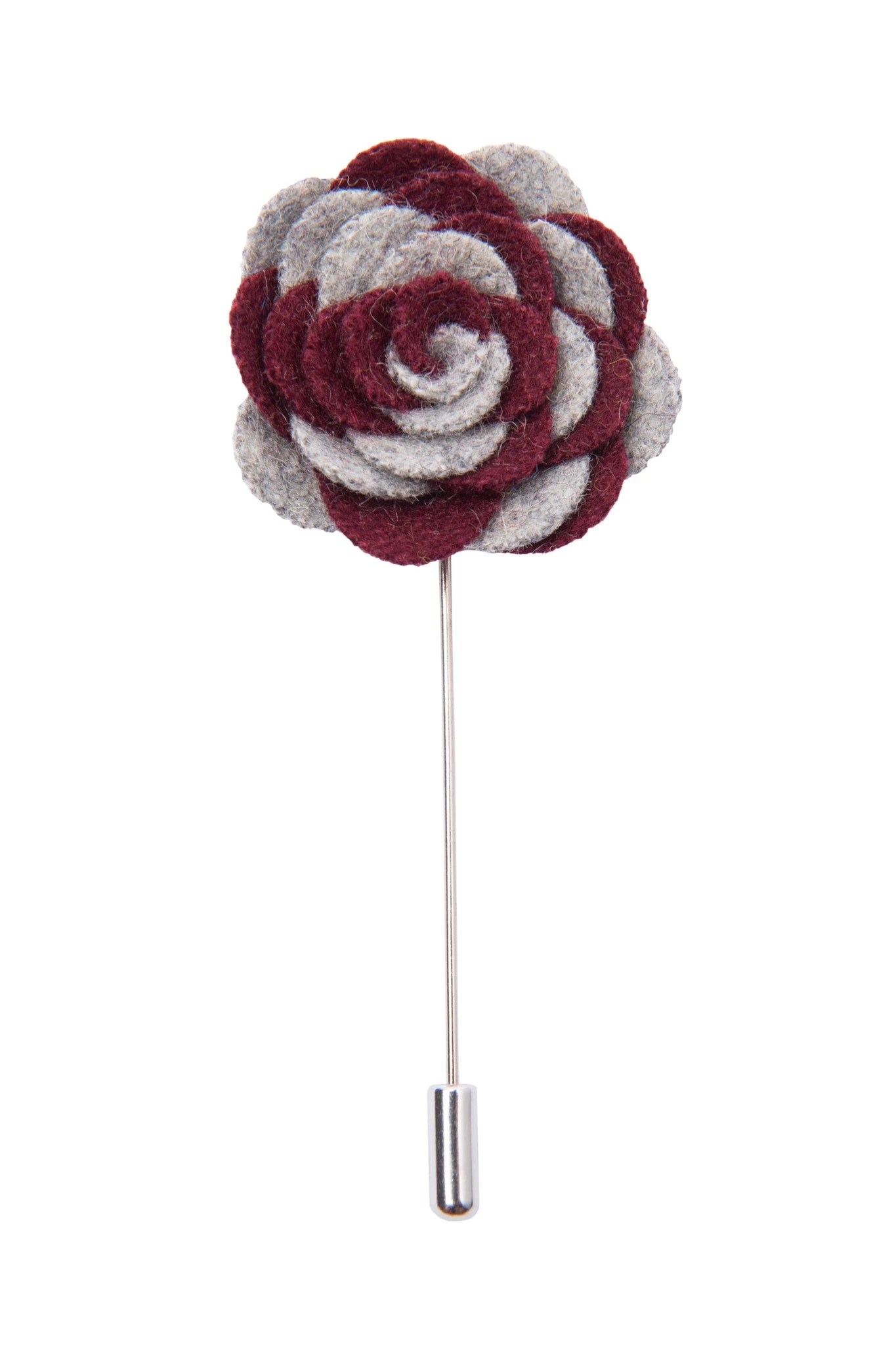 Washington Grey / Burgundy is a contemporary hand cut lapel flower that will add an element of flair to your ensemble.