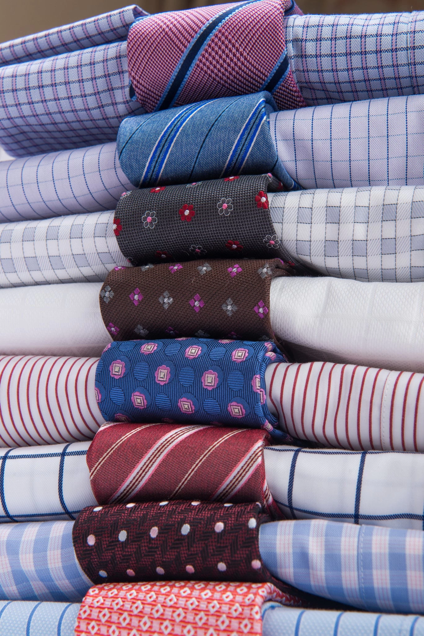 Our experts suggest pairing this modern design with a solid blue, grey, or white shirt and a solid, pinstripe or plaid charcoal grey or navy blue suit. A blue shirt will provide the perfect level of contrast, a grey shirt will offer an ideal neutral backdrop, while a white shirt will have you looking elegant.Â